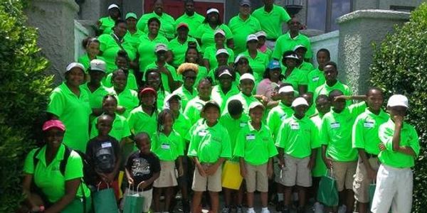 Below: The Foundation youth receive golf lessons from Jim Dent, 12 time PGA Tour Champion